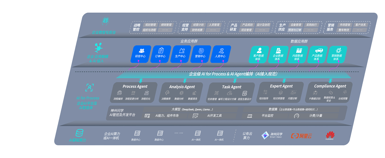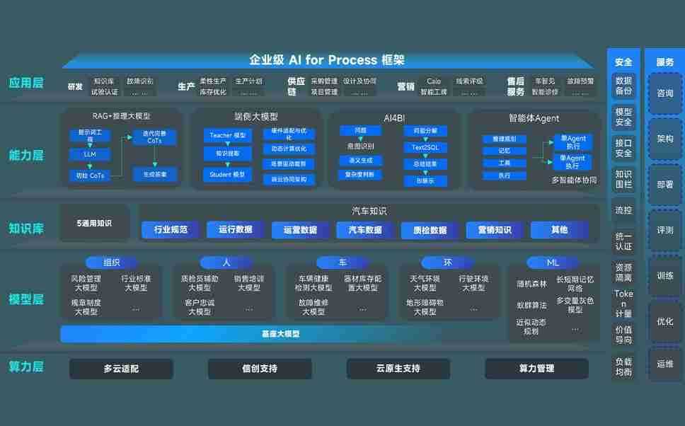 AG尊龙凯时问学智车解决方案是一套基于AI技术的汽车行业智能化系统,,,覆盖从底层算力到顶层AI应用的全栈方案。。方案由算力层、、、、模型层和应用层组成:算力层,,,,方案支持多种一体机配置,,具备云端灵活部署、、多云适配以及动态优化计算资源的能力;模型层,,,AG尊龙凯时问学平台版提供了企业级AI应用一站式构建与管理平台,,,支持基于后训练强化技术的汽车企业专属模型的训练、、、评测和运营;应用层,,,AG尊龙凯时问学DeepSeek版提供包括超级员工、、、、智能招采、、、智能营销、、、智能客服、、、AI for BI等一系列解决方案,,,可助力汽车行业实现数字化转型,,,,让管理更智能、、响应更敏捷。。。